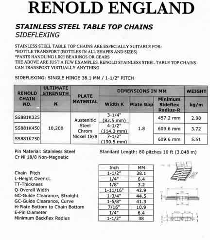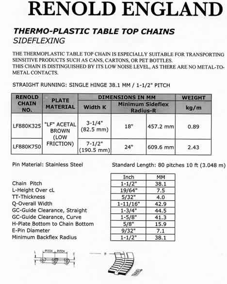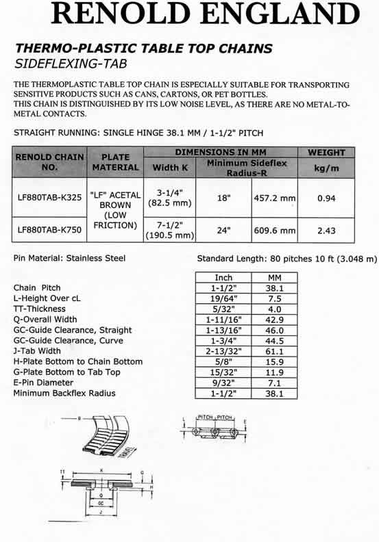 "Renold" Thermoplastic Table Top Chains (Sideflexing)