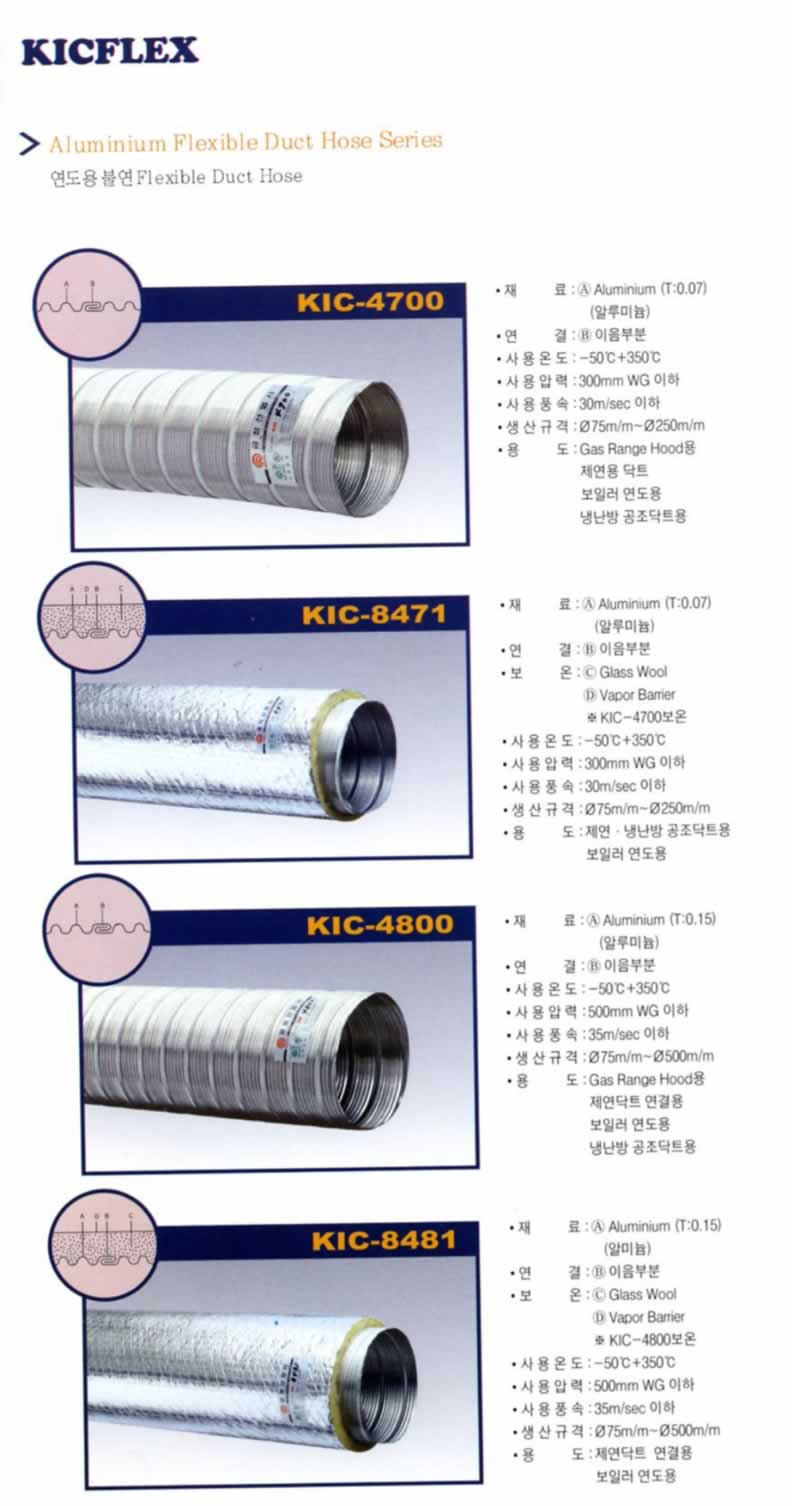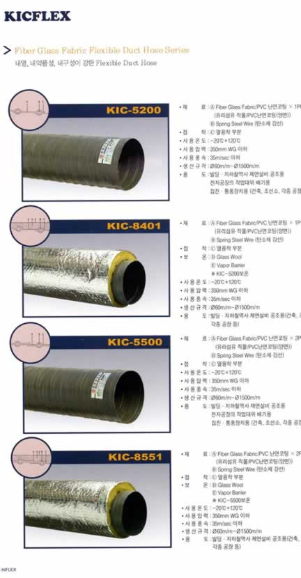 "Kicflex" Fiber Glass Fabric Flexible Duct Hose Series |