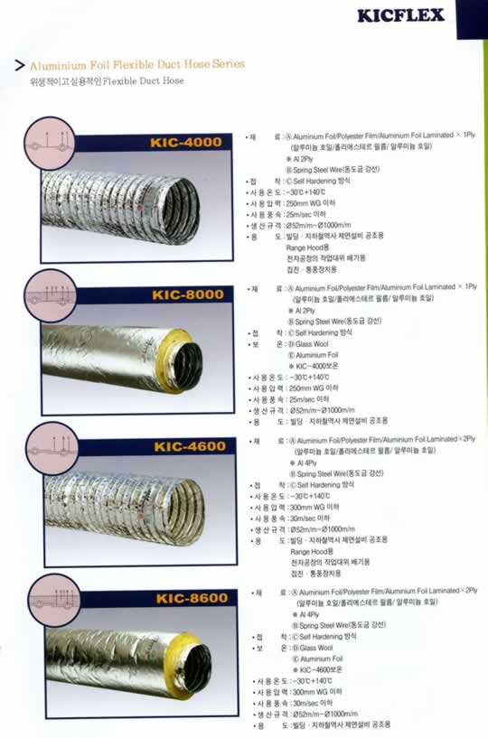 "Kicflex" Aluminum Foil Flexible Duct Hose Series |